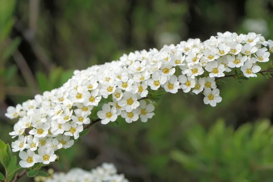 - Hortensja ogrodowa – białe odmiany, które kwitną wcześniej w sezonie.